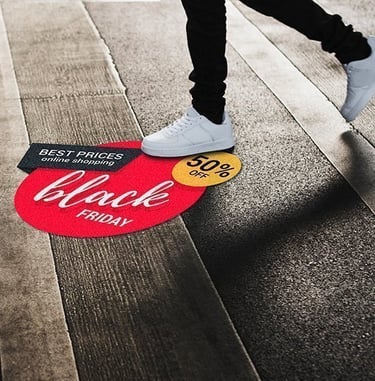 Gli adesivi per pavimenti sono la soluzione ideale per la segnaletica della tua azienda, in fiera, in spazi museali, uffici e negozi. Il materiale Safeway resiste all'acqua e a prodotti per la pulizia, assicurando attrito quando calpestato.